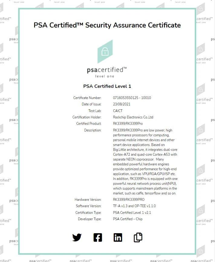RK3399Pro及RK3399通過Arm平臺安全架構(gòu)PSA認(rèn)證