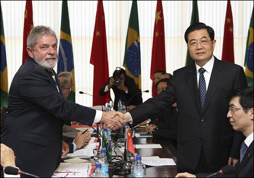 2010,April 14th to 15th ,invited by the president of Federative Republic of Brazil Luiz Inácio Lula da Silva ,President Hu Jintao paid a state visit to Brazil .During the visitation,President Hu Jintao talded with President Luiz.The two of the state's leaders exchanged their ideas of the bilateral ties and the areas of common interest,as well as the international problems. They spoke highly of this meeting ,and considered the visitation a pushment of the strategic partnership between this two countries.